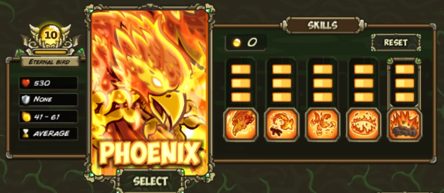 简单介绍一下技能:1. 同归于尽:向下俯冲,造成高额范围伤害并牺牲。(在这种状态下死亡后会变成凤凰之蛋,5秒后涅槃重生并产生爆炸)
