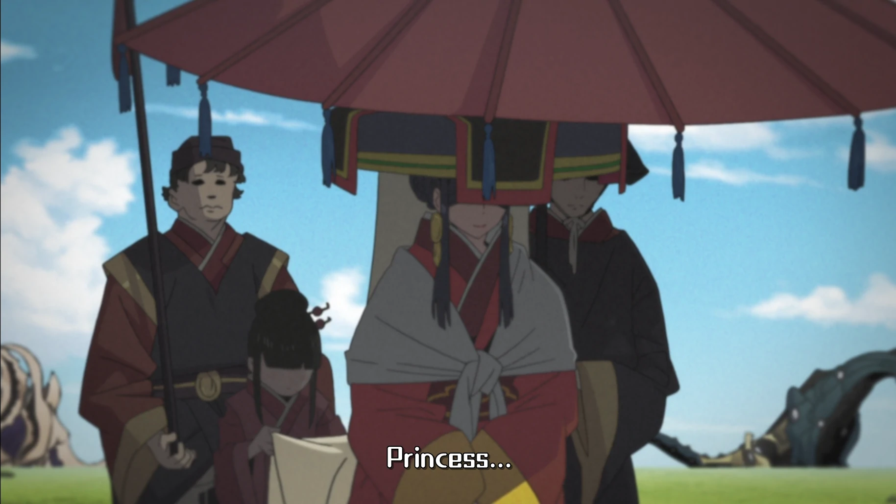 失马口中的公主现身了,这一身的中式装扮,很明显对应了特摄18集的剧情,同时也揭示了这部番剧的大背景。事实上这里也解释了前作的背景,这个世界早在5000年前就有各种怪兽(那么新条茜是不是已经是个5000岁的老女人了呢?)